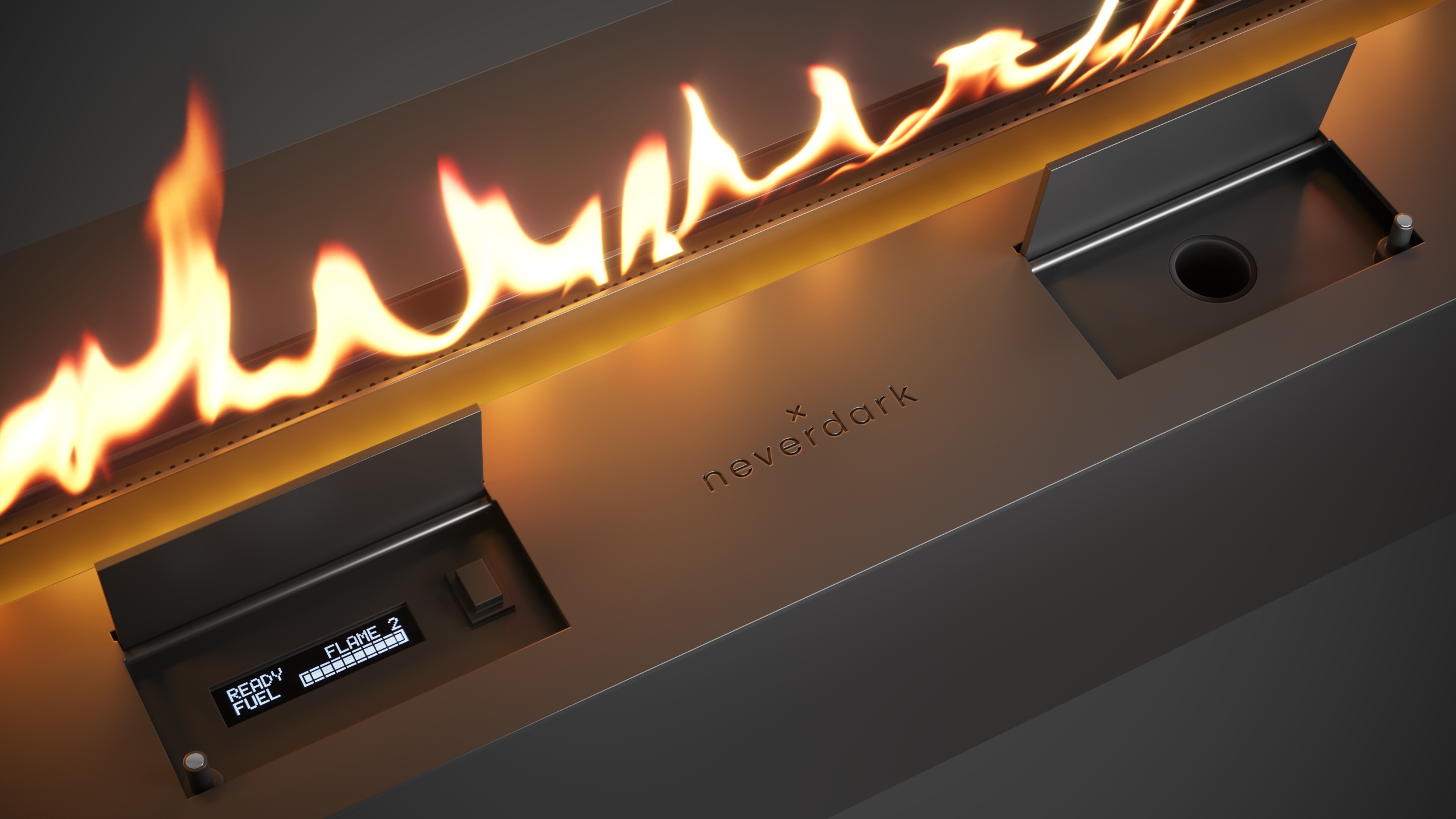 Ο Neverdark Automatic είναι ένας ventless καυστήρας βιοαιθανόλης σχεδιασμένος για όσους θέλουν καθαρή γραμμική φλόγα με απλή λειτουργία και σύγχρονη αισθητική. Προσφέρει την χαρακτηριστική φλόγα Neverdark χωρίς καμινάδα ή παροχή αερίου, ιδανικός για μοντέρνους εσωτερικούς χώρους.