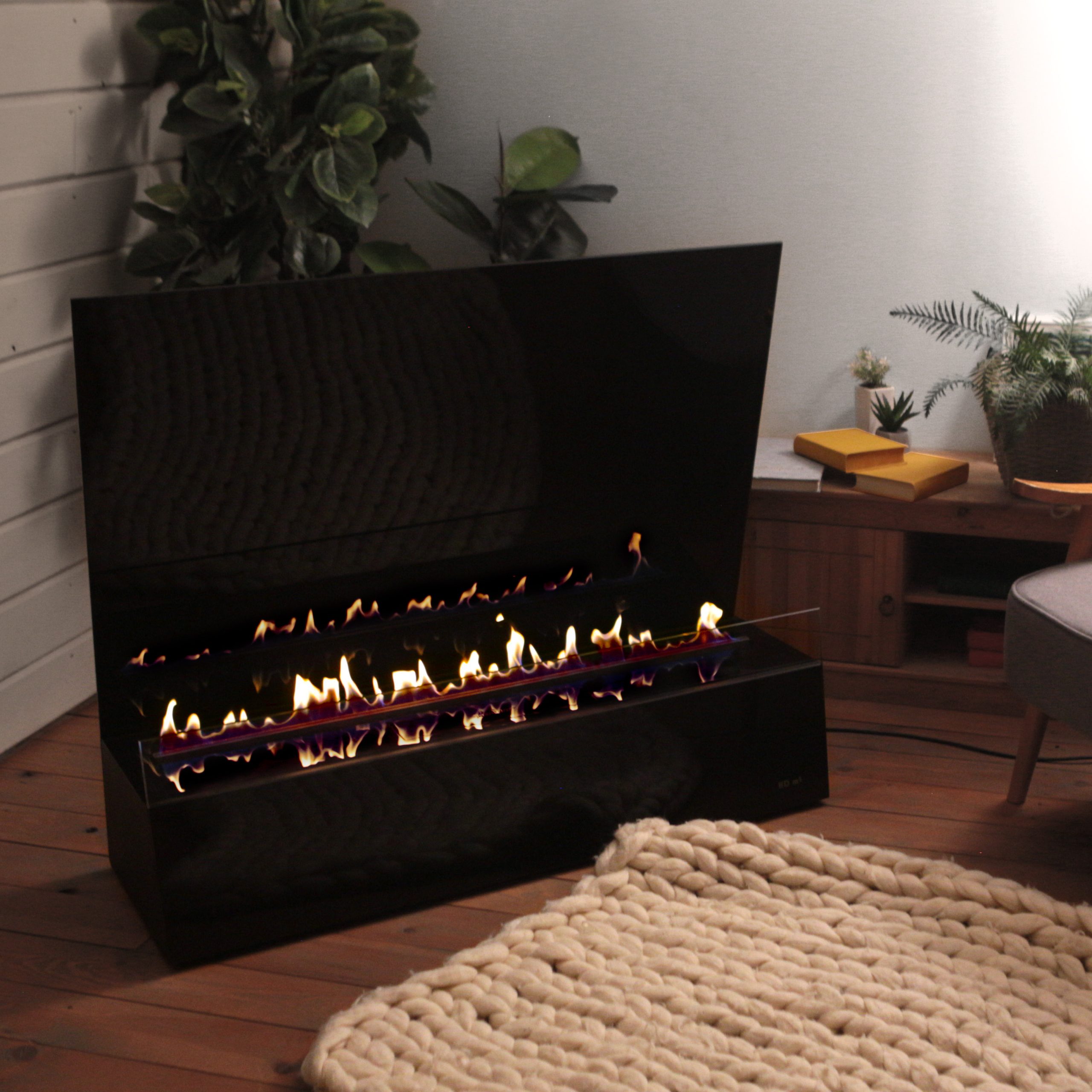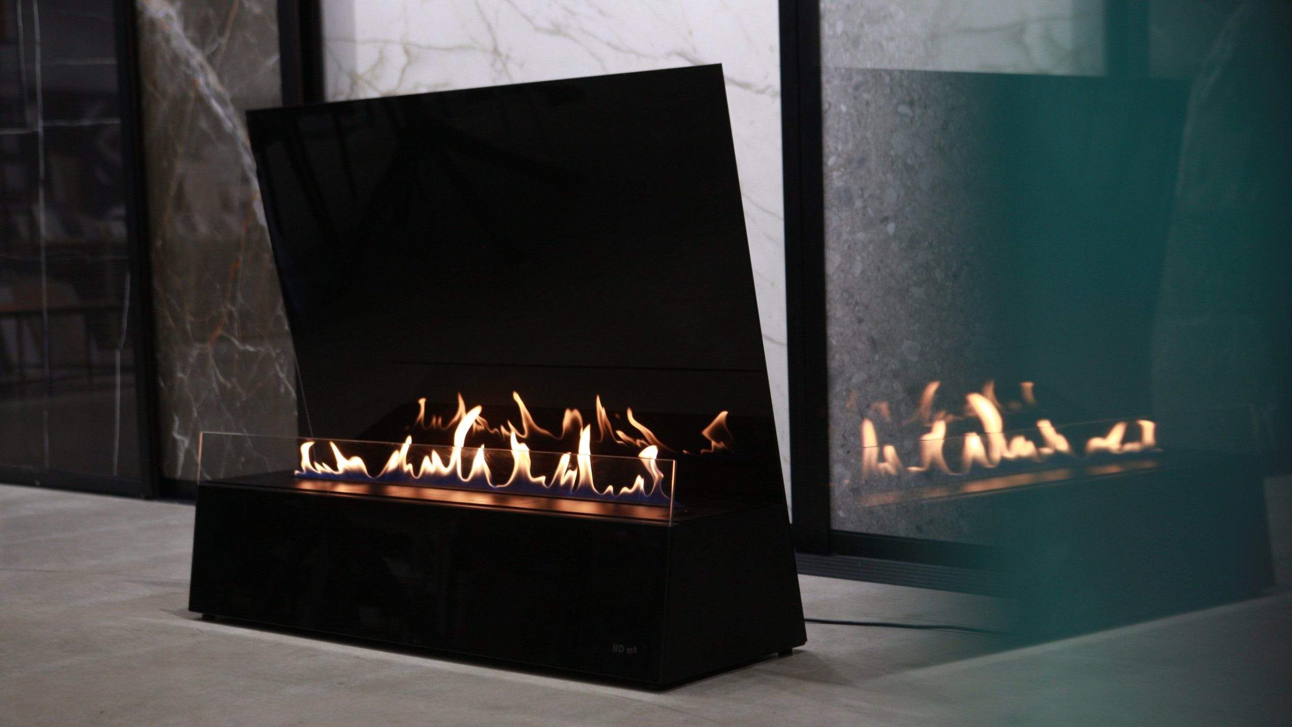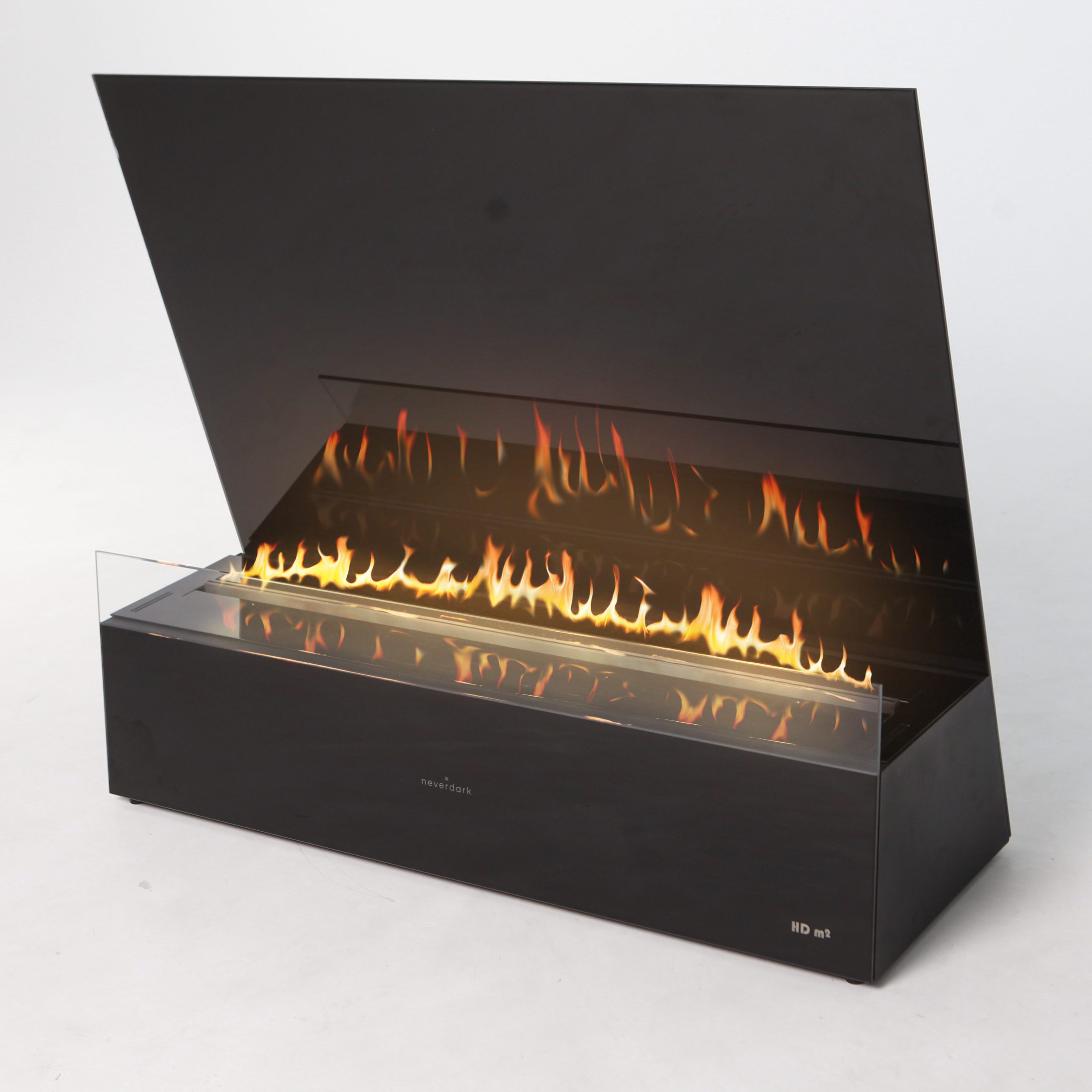 The Neverdark Fild bioethanol fireplace is an ideal solution for modern homes, apartments and design-focused interiors that want a compact freestanding fireplace with advanced technology and clean aesthetics.