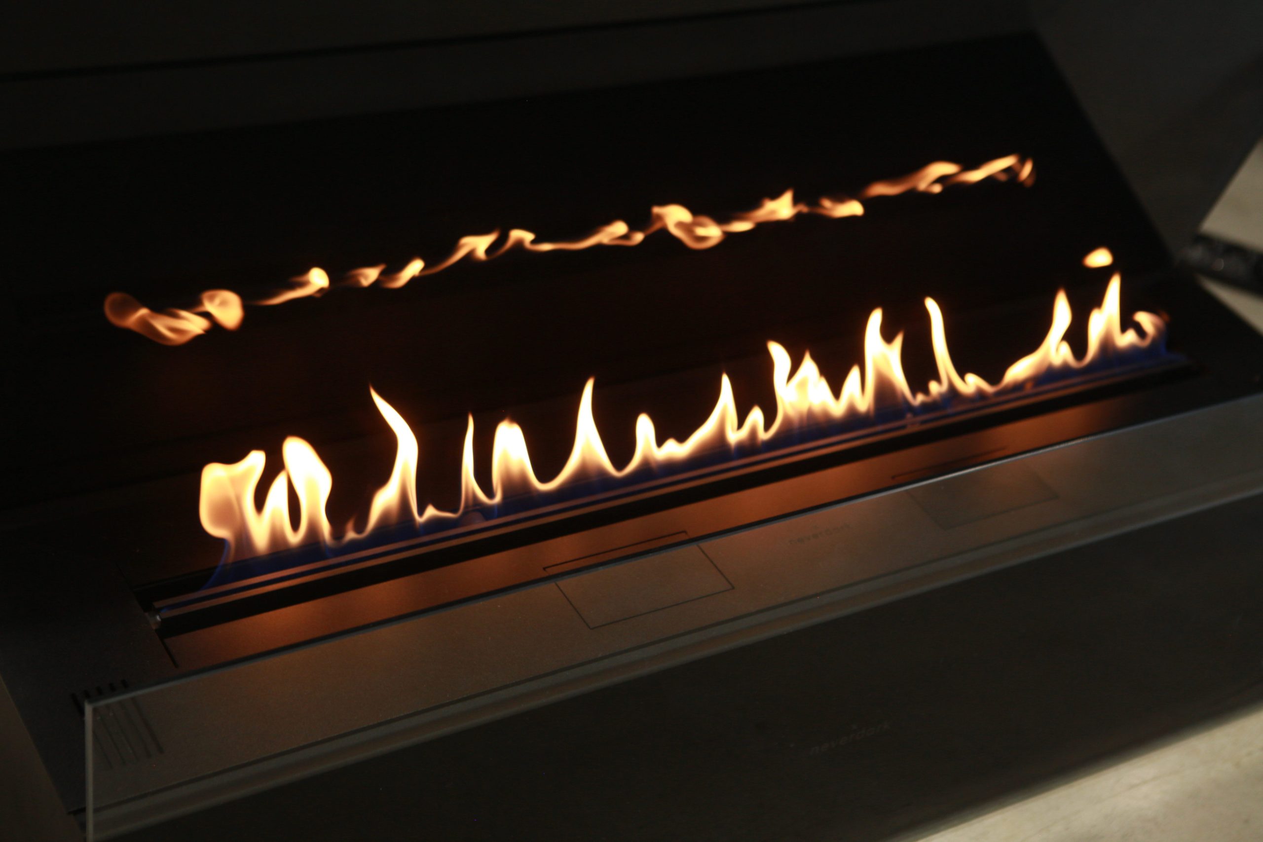 Unlike linear burners, the Neverdark Fild bioethanol fireplace features a volumetric flame that rises naturally, creating depth and movement similar to a traditional wood fire. The result is a warm and realistic flame presentation without smoke, soot or the need for a chimney.
